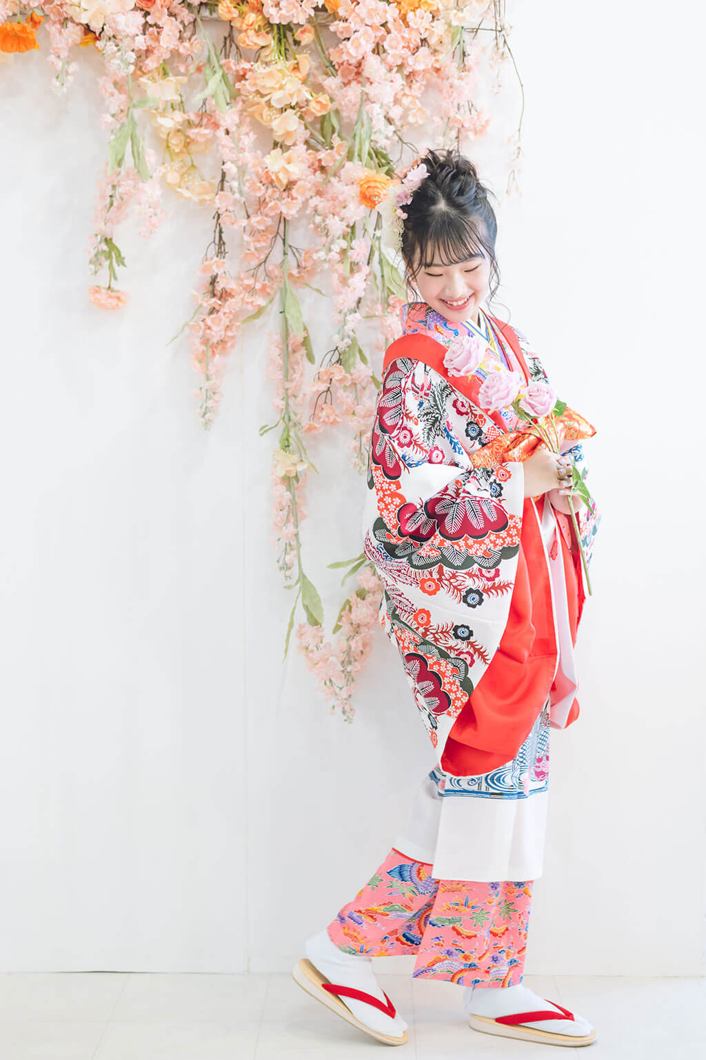 黄色い打掛と白の打掛の組み合せ中からお選び頂けます。